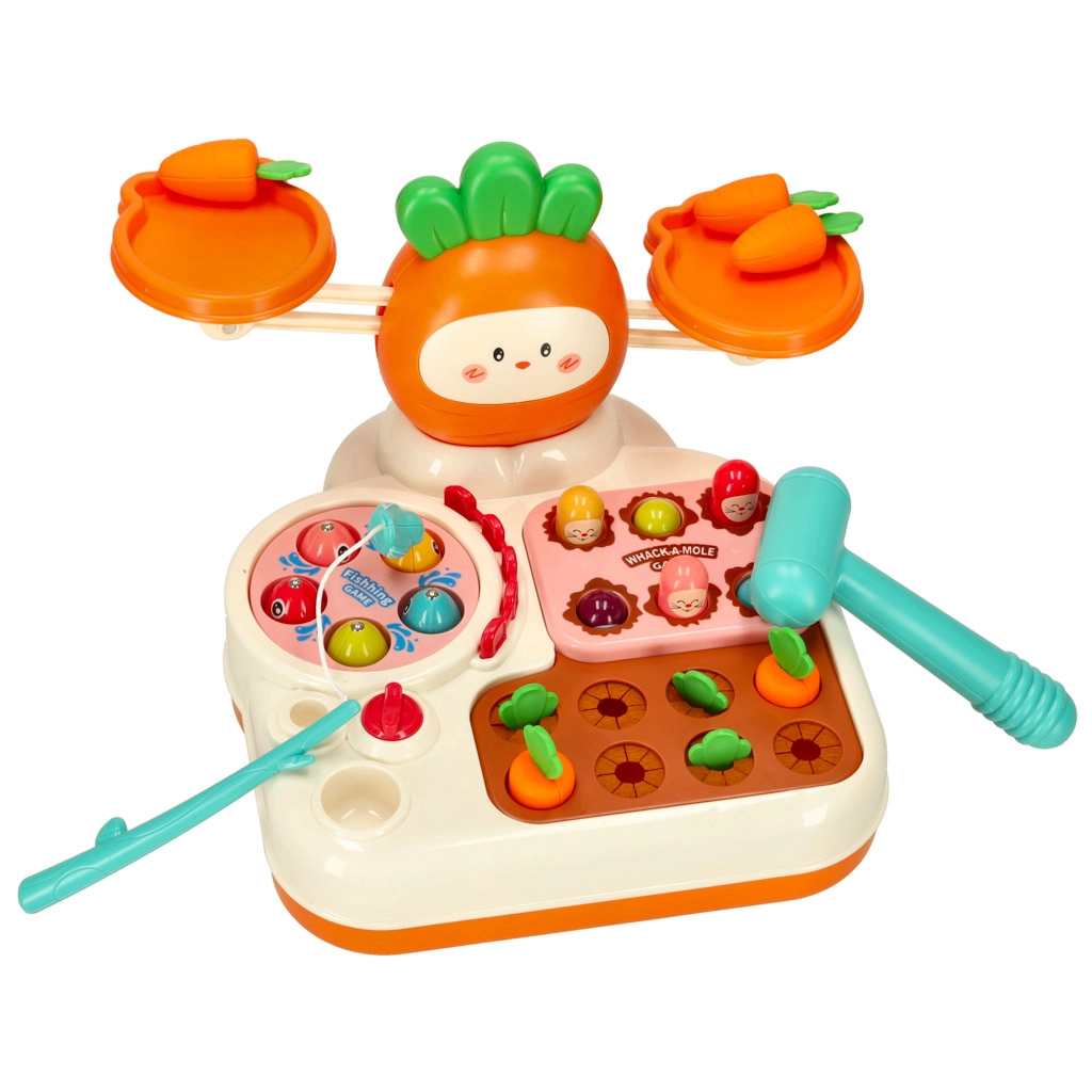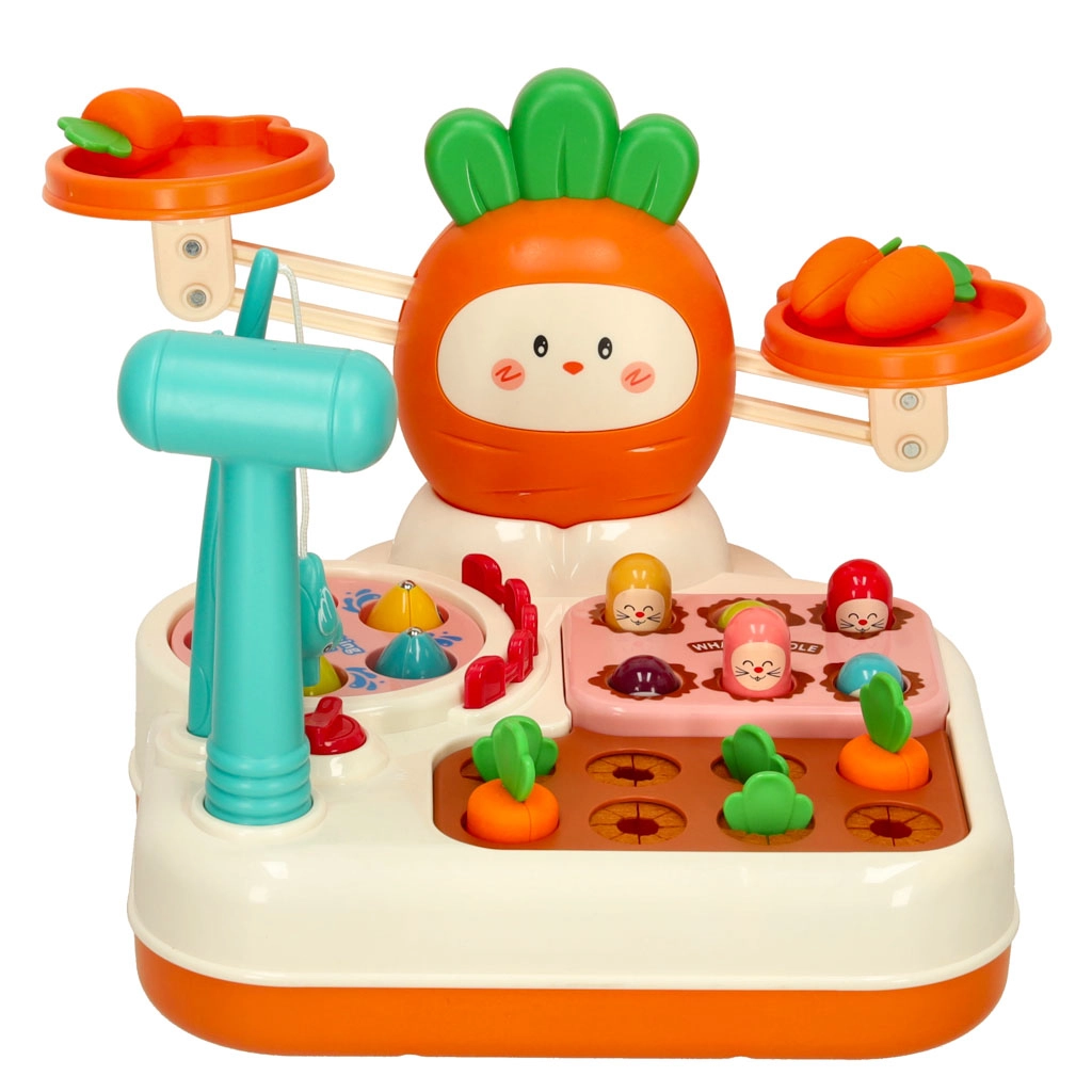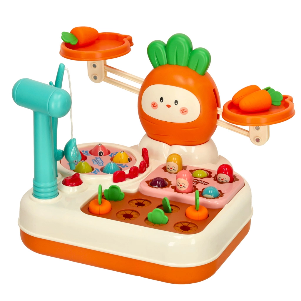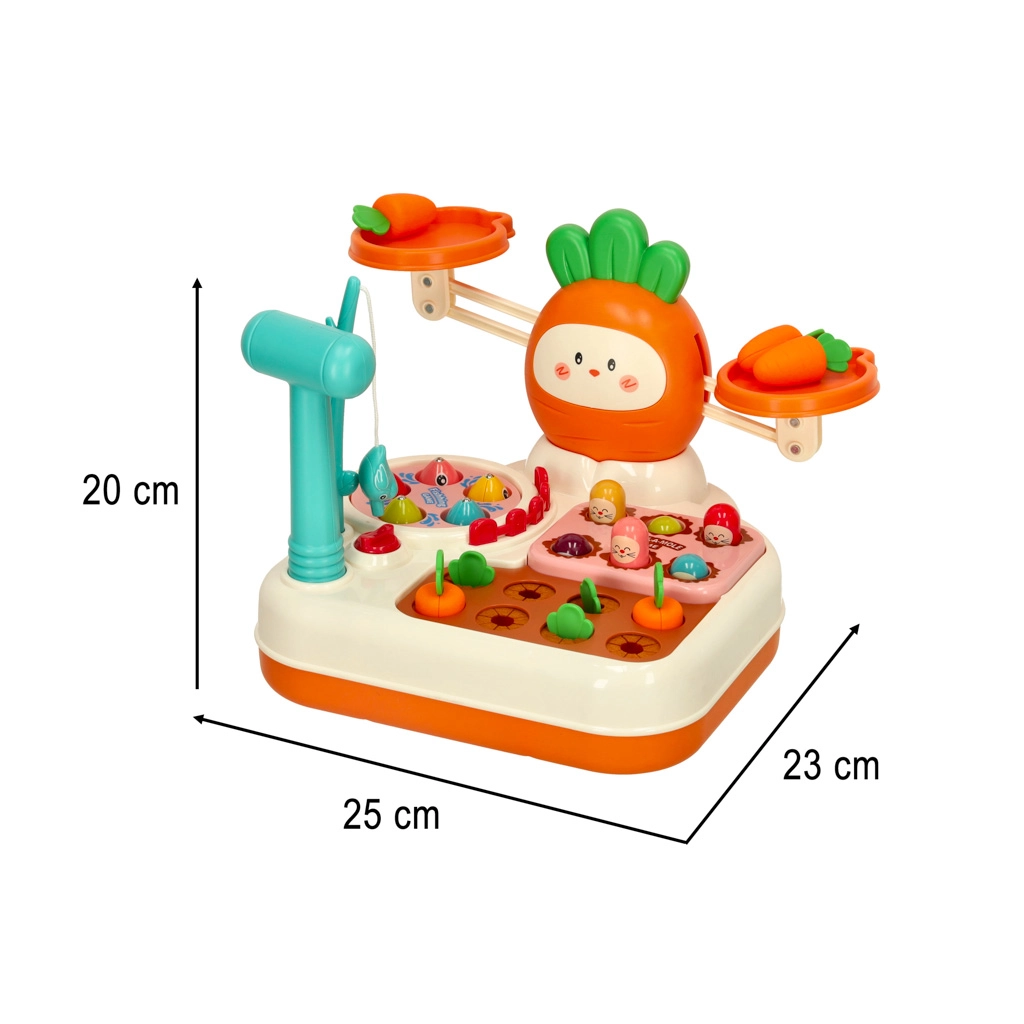 Jouet éducatif 4‑en‑1 pour enfants : balance carotte avec pêche et petit marteau