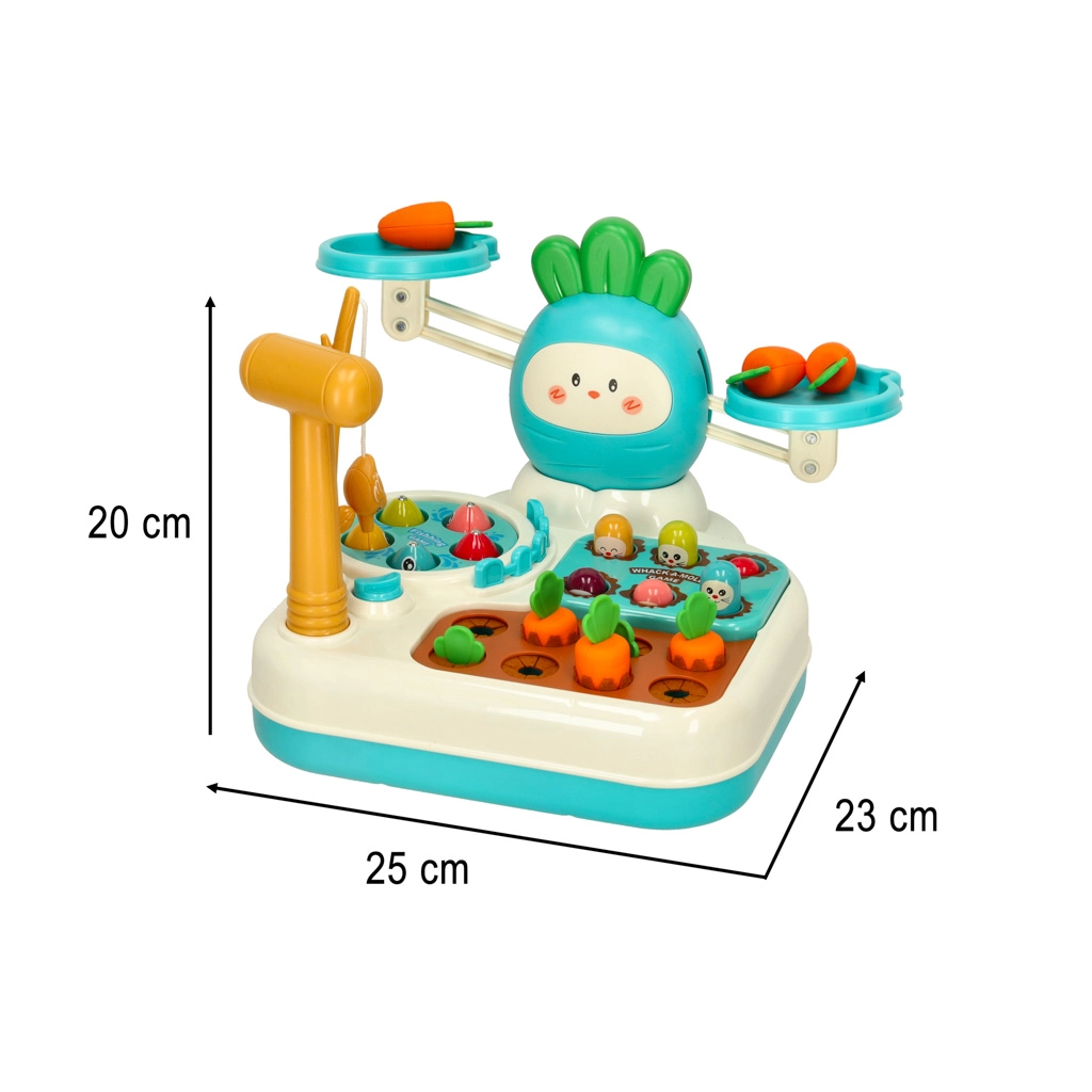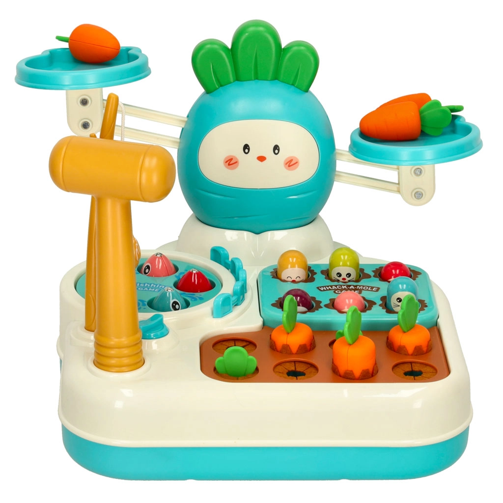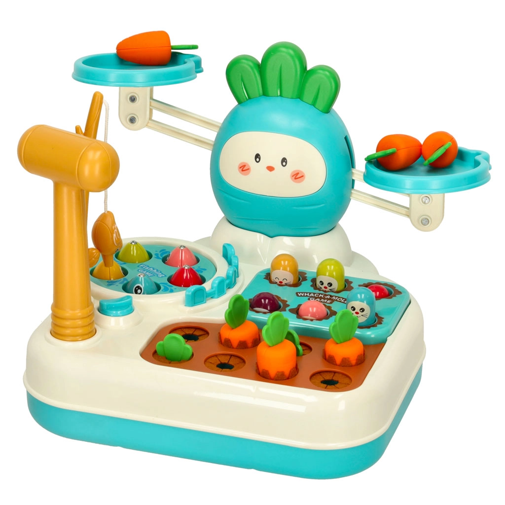 Jouet éducatif 4-en-1 avec balance, taupe et jeu de pêche, bleu