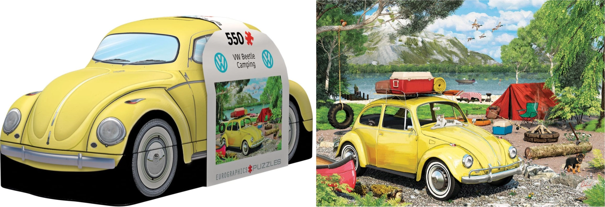 Puzzle en boîte métallique VOLKSWAGEN Coccinelle au camping 550 pièces