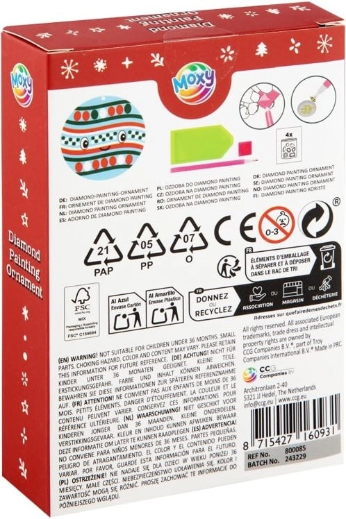 Chaque kit de peinture diamant comprend une toile préimprimée avec couche adhésive et légende DMC, des strass acryliques (ronds/carrés), un applicateur/stylo avec cire, un plateau et des sachets pour le tri; souvent aussi une pince. Grâce à une impression de qualité, une forte adhérence et un marquage précis, les strass se posent facilement et la mosaïque finale brille comme un cristal 5D. La création est facile pour débuter, mais conduit à une image détaillée et développe concentration et motricité fine.