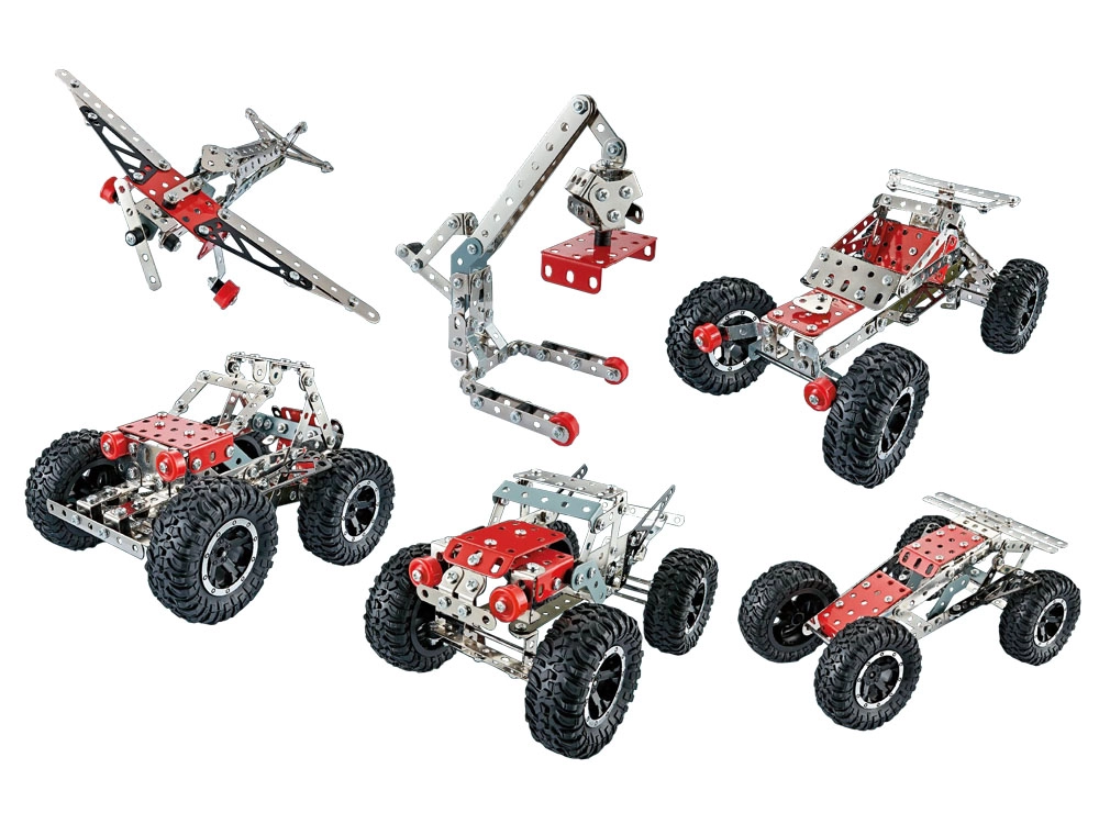 Faites tourner l’imagination et les vis – les jeux de construction en métal transforment petits et grands en constructeurs passionnés. Chaque kit de construction métallique avec pièces à vis et écrous, profilés, plaques et engrenages permet d’assembler des modèles mécaniques de voitures, grues, avions et machines. Grâce à des composants solides et résistants, chaque assemblage tient fermement et le rendu est réaliste.