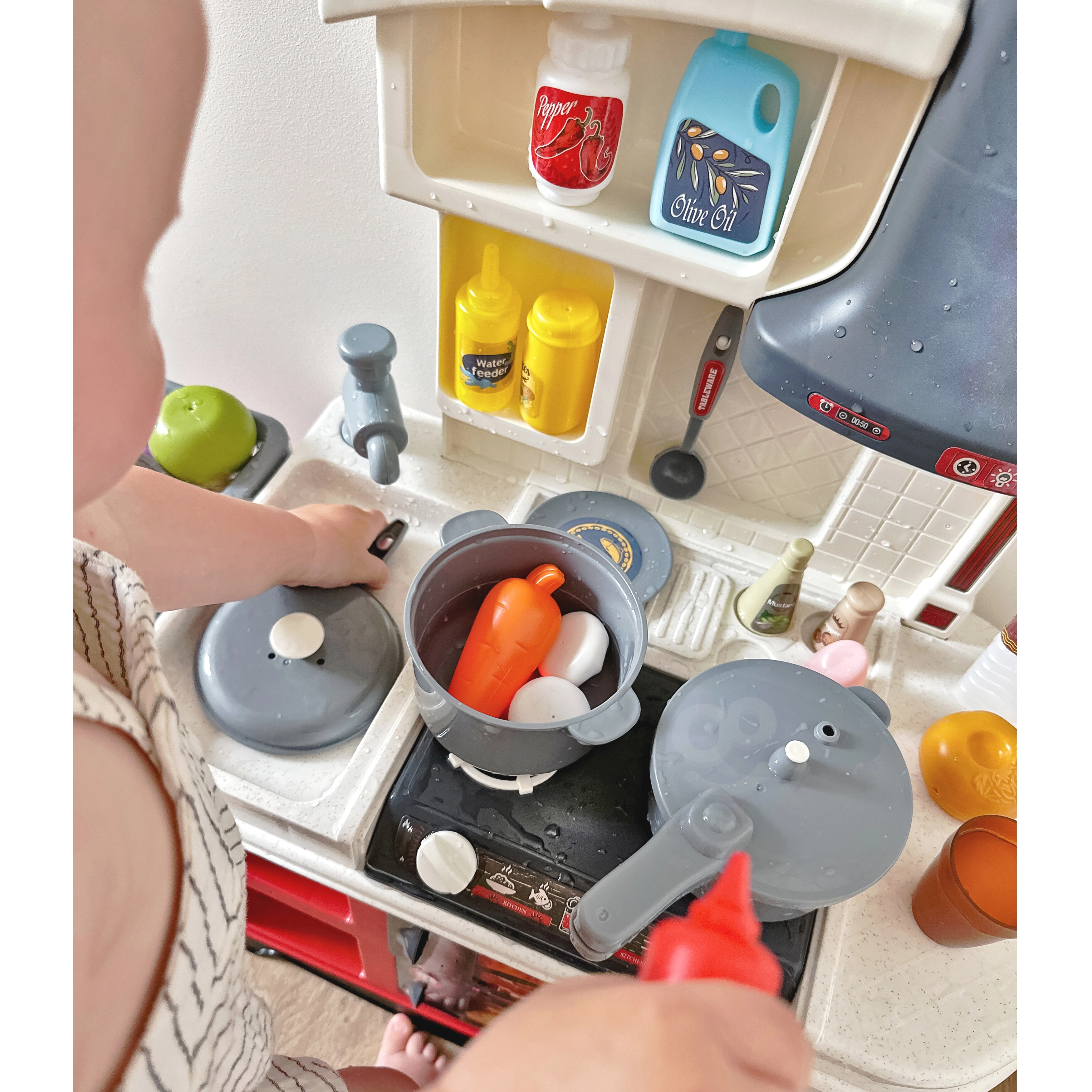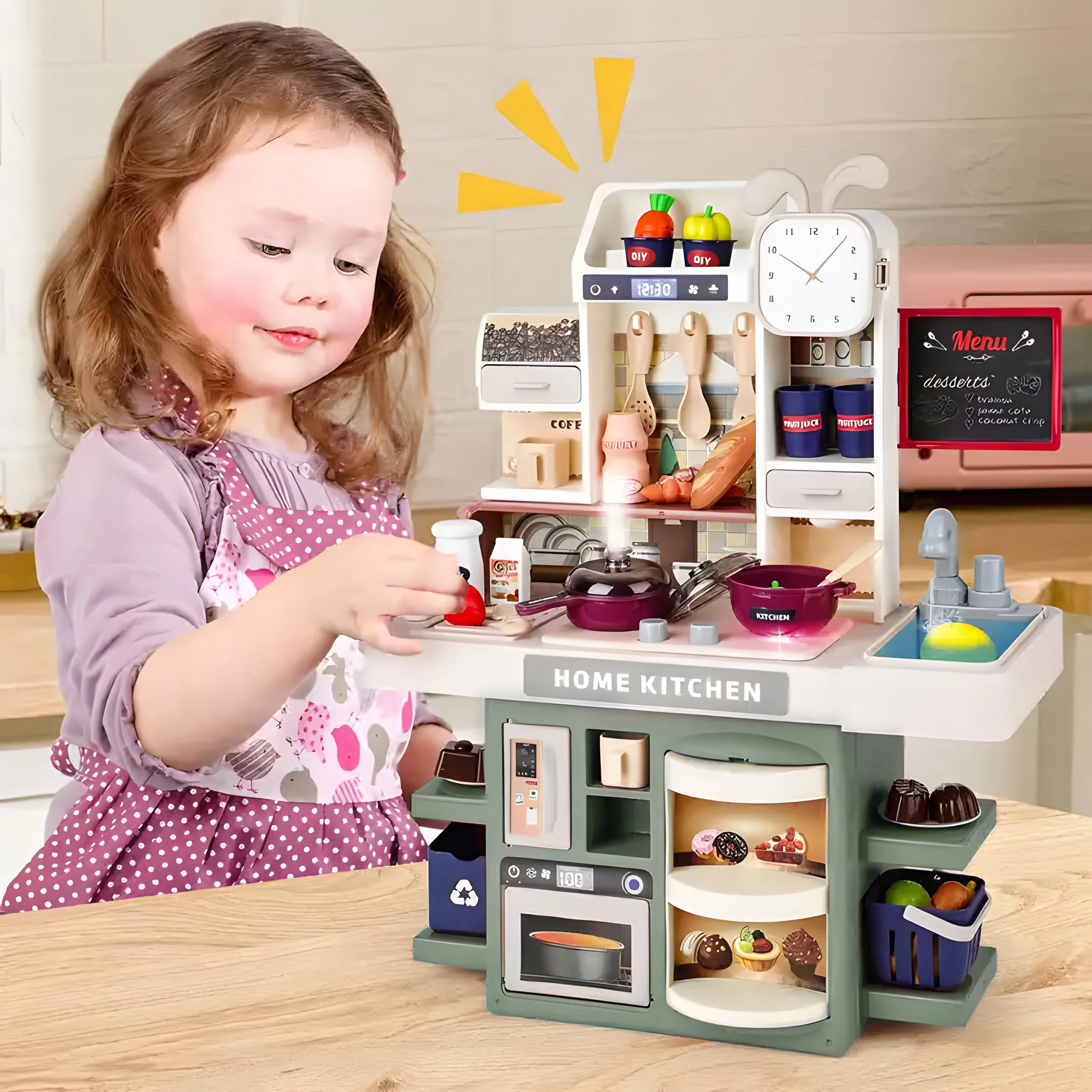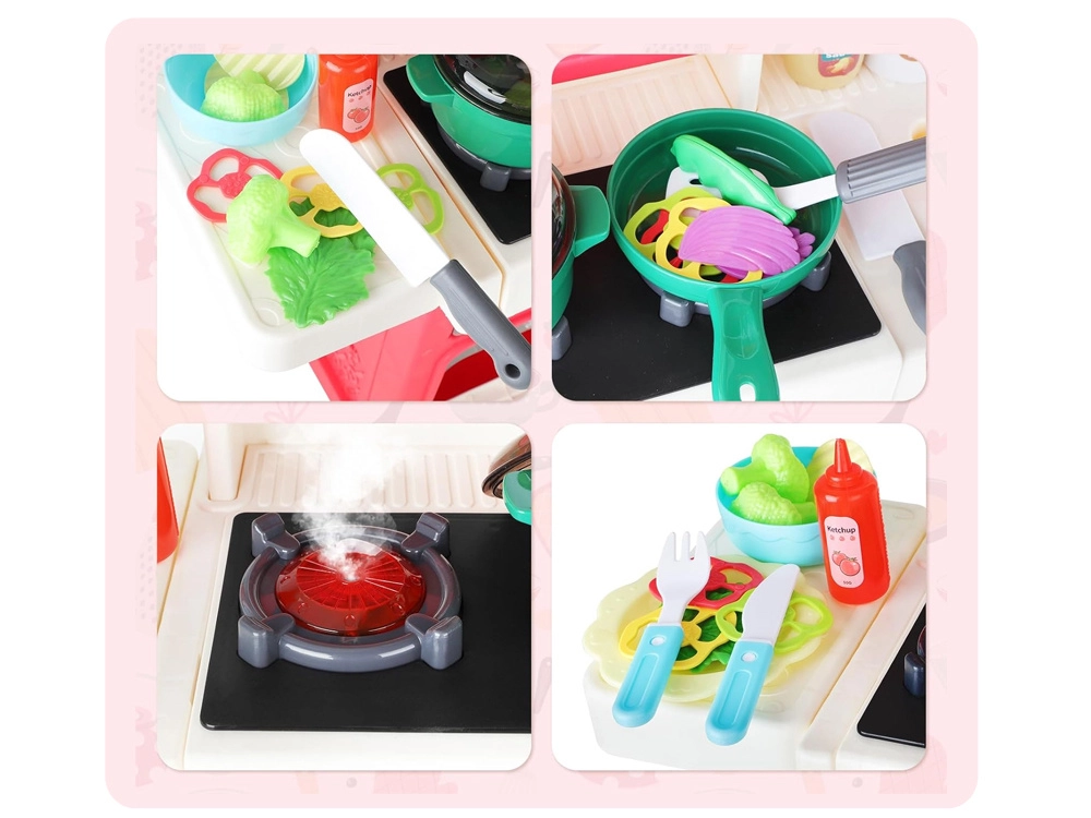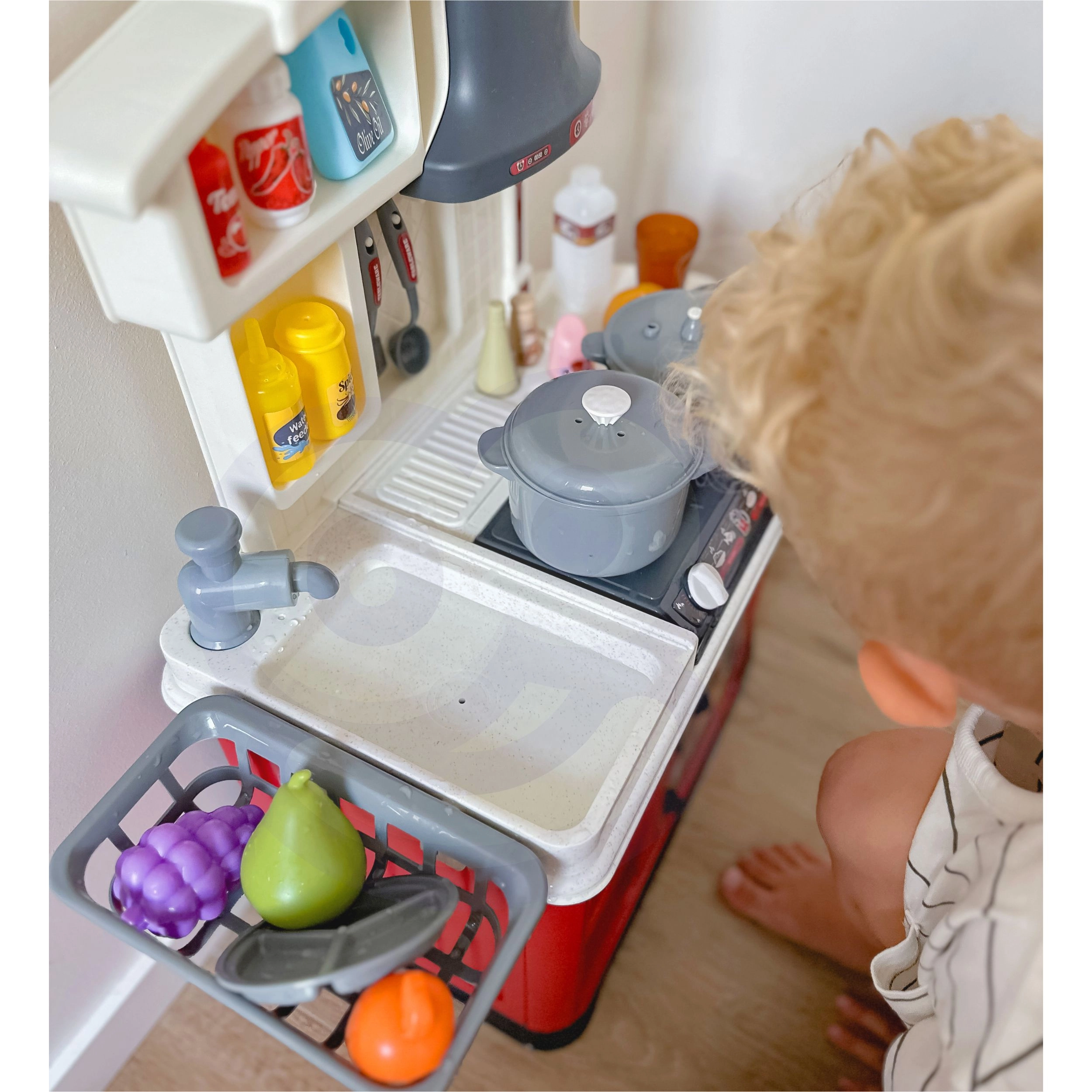 Une cuisine pour enfants moderne favorise le jeu de rôle créatif et les jeux de métiers de Chef : elle développe l’imagination, les compétences sociales, la motricité fine et la coordination. Les appareils de cuisine pour enfants et la dinette apprennent à planifier les étapes, trier les aliments, compter les portions et nommer les ingrédients ; les aliments à découper avec velcro garantissent un jeu amusant et riche de sens.