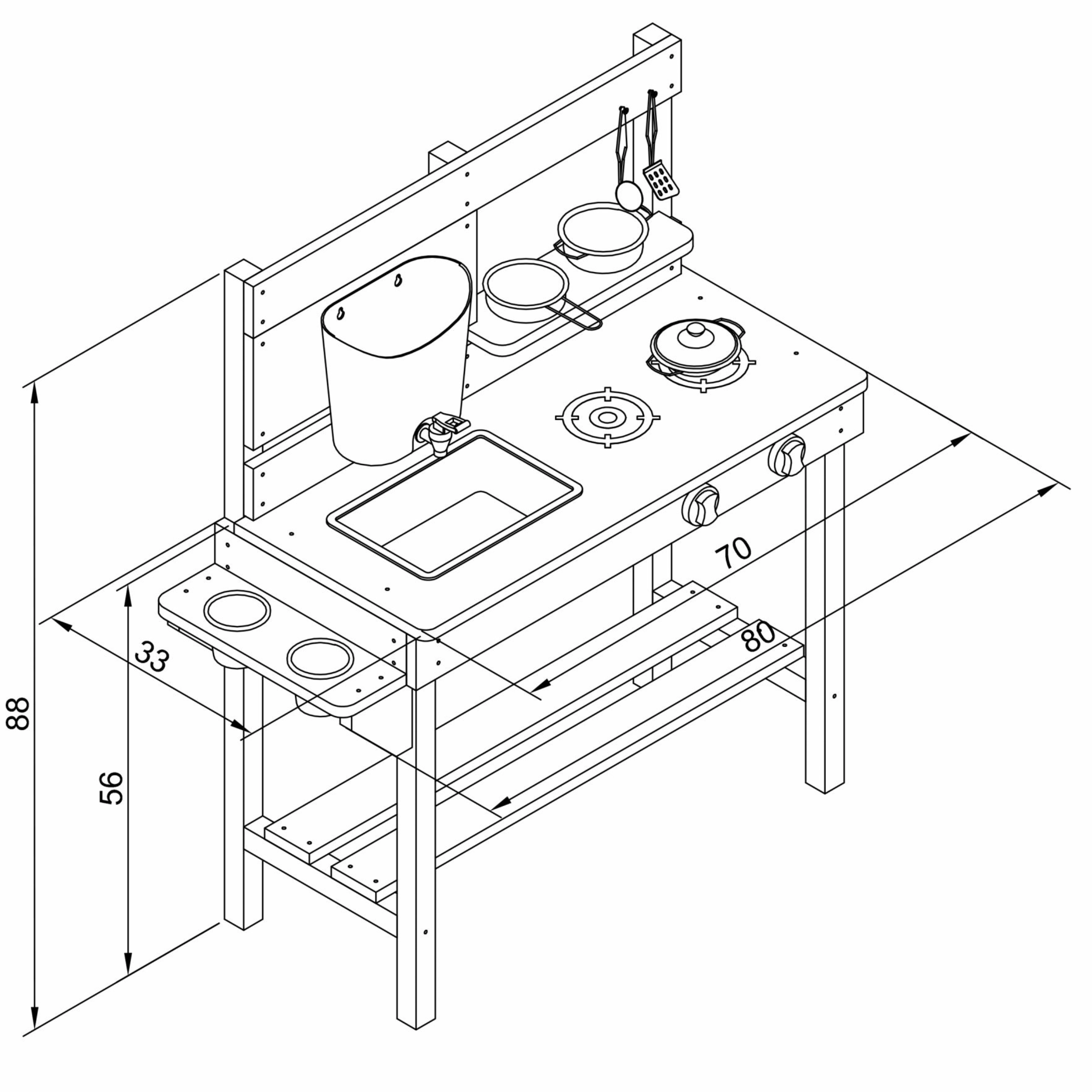 Chaque cuisine pour enfants séduit par ses nombreux accessoires : casseroles et poêles, couverts, services à thé et à café, épices, aliments de cuisine ainsi que des tabliers pour les petits chefs. Des éléments pratiques comme des étagères, des rangements, des portes magnétiques, un tableau pour le menu ou encore une hauteur de plan de travail adaptée aux enfants facilitent l’organisation ; vous apprécierez des matériaux résistants, un montage aisé et une longue durée de vie pour cuisiner au quotidien dans le monde de l’imaginaire.