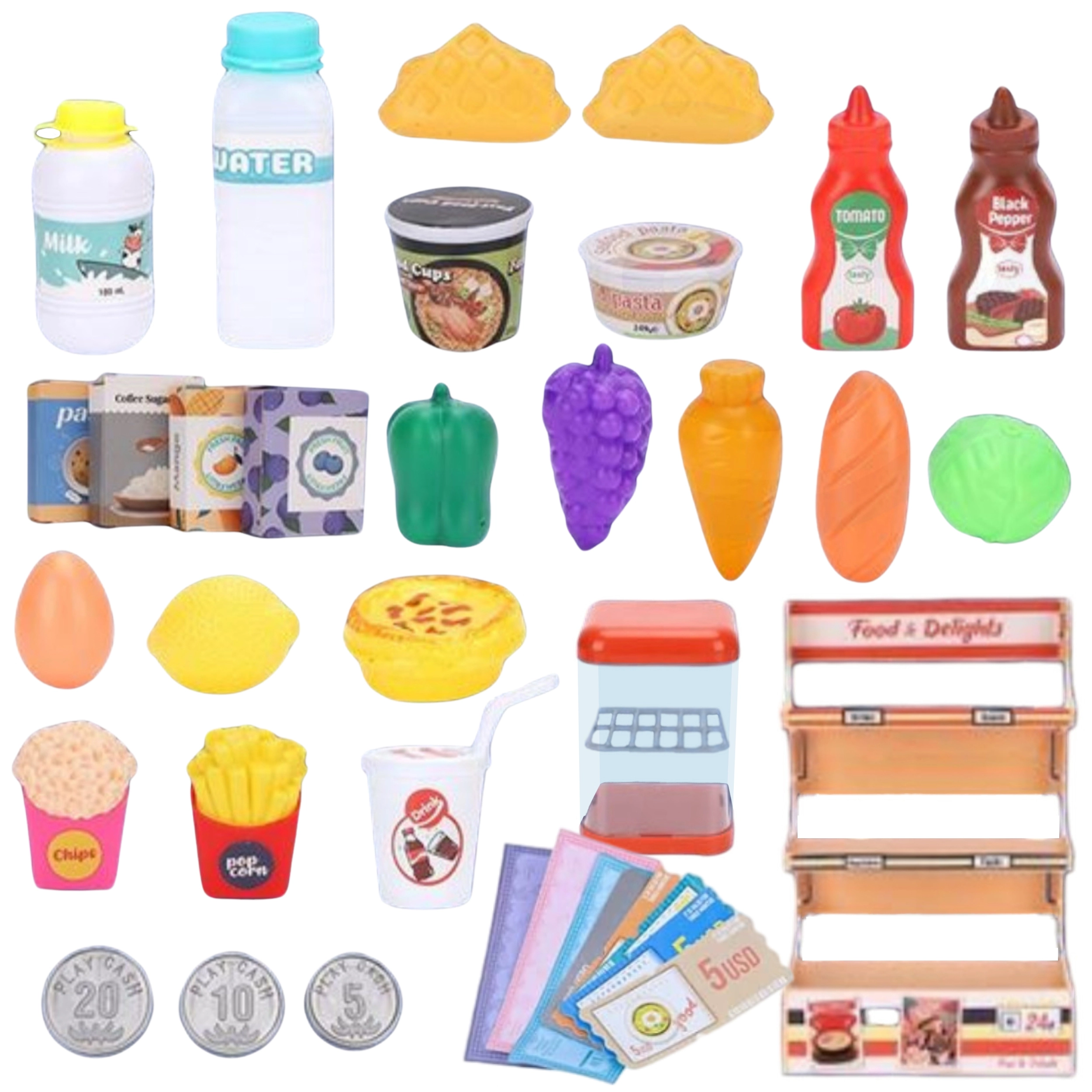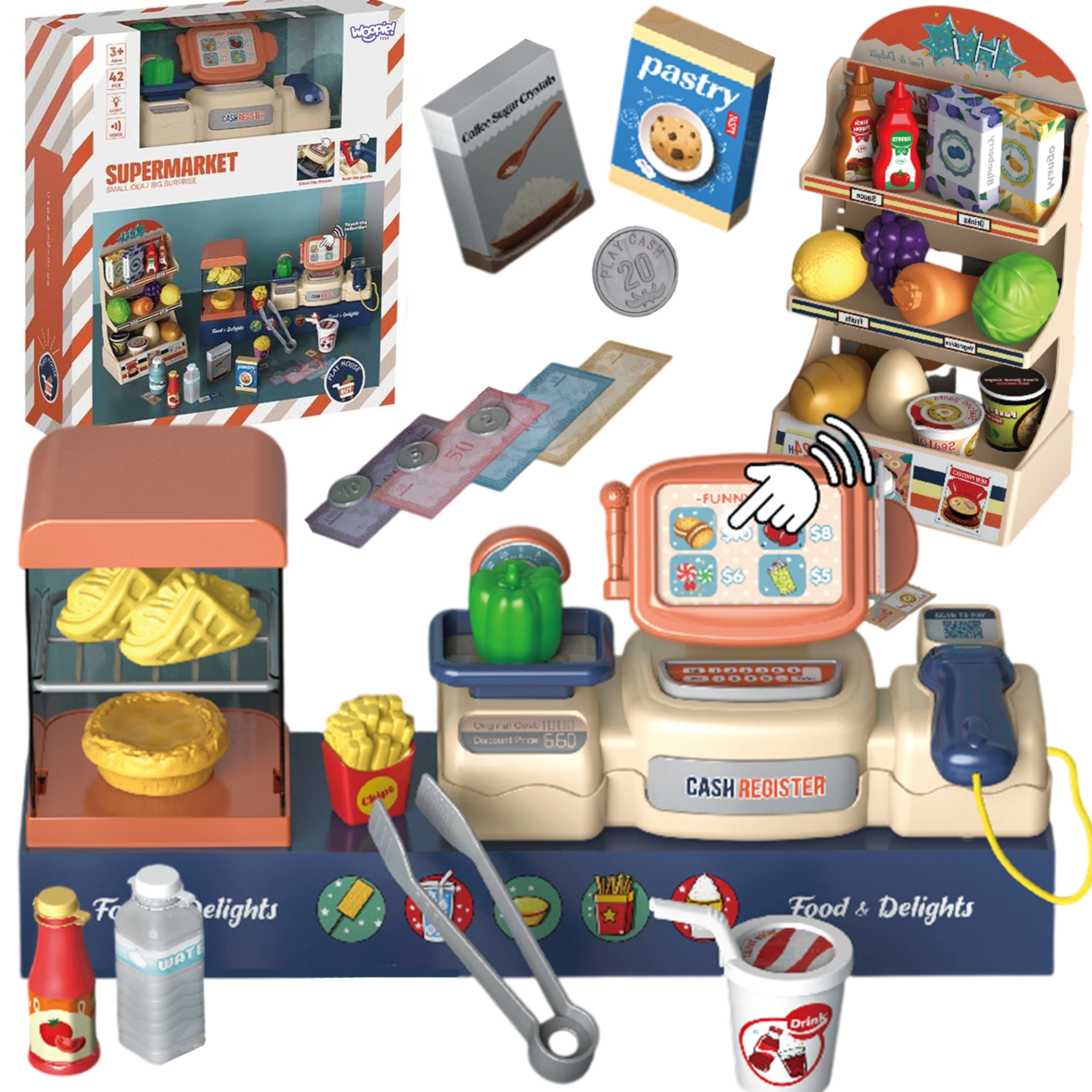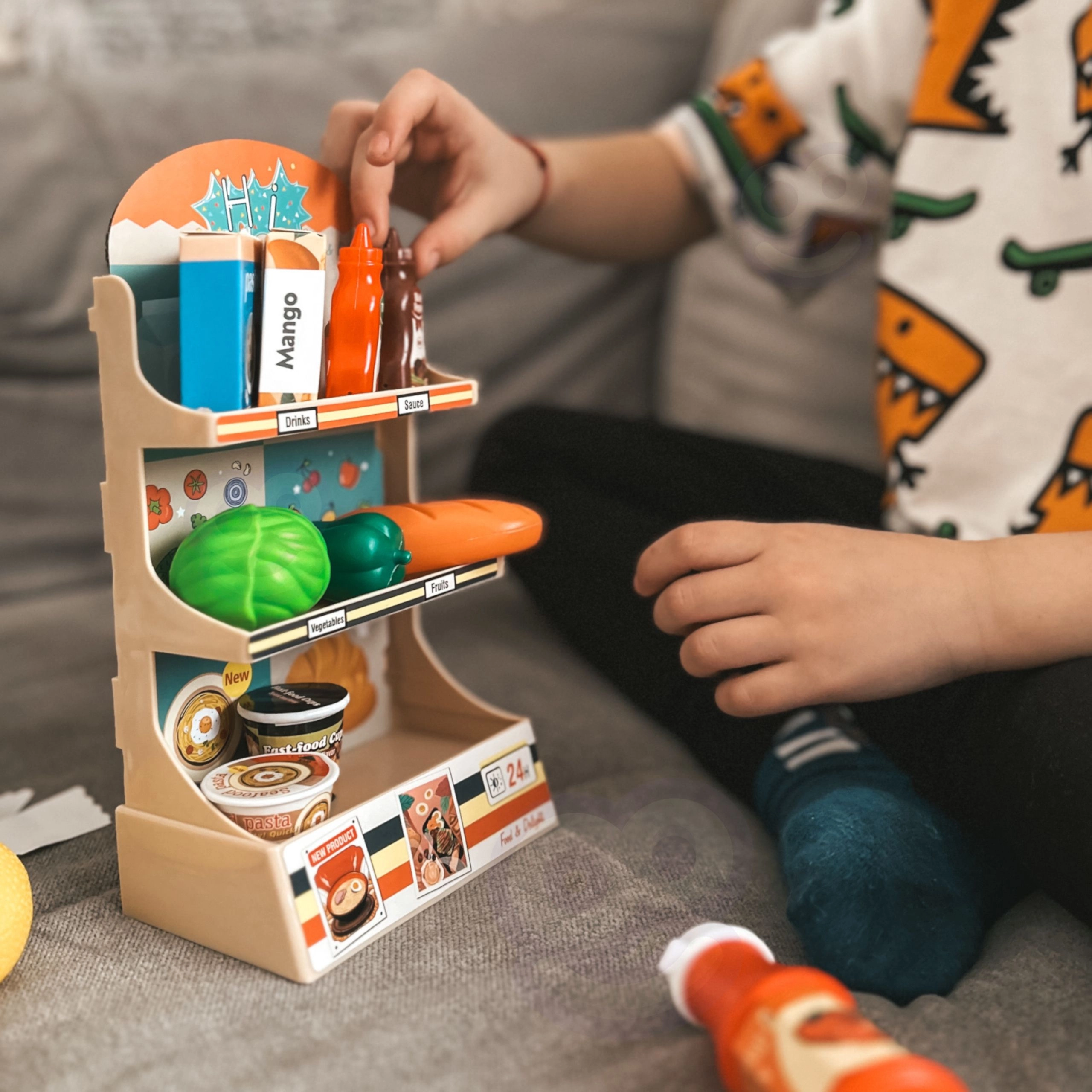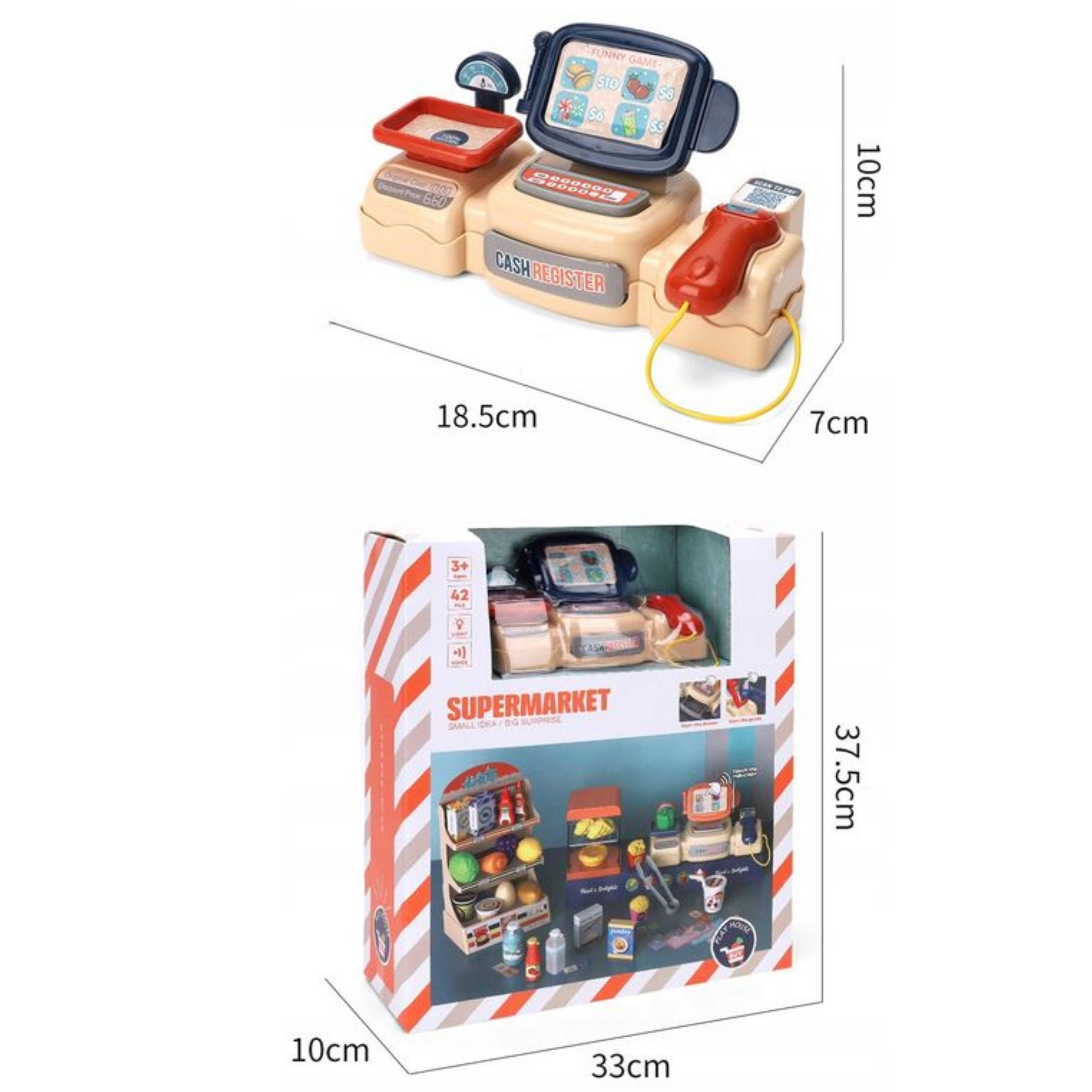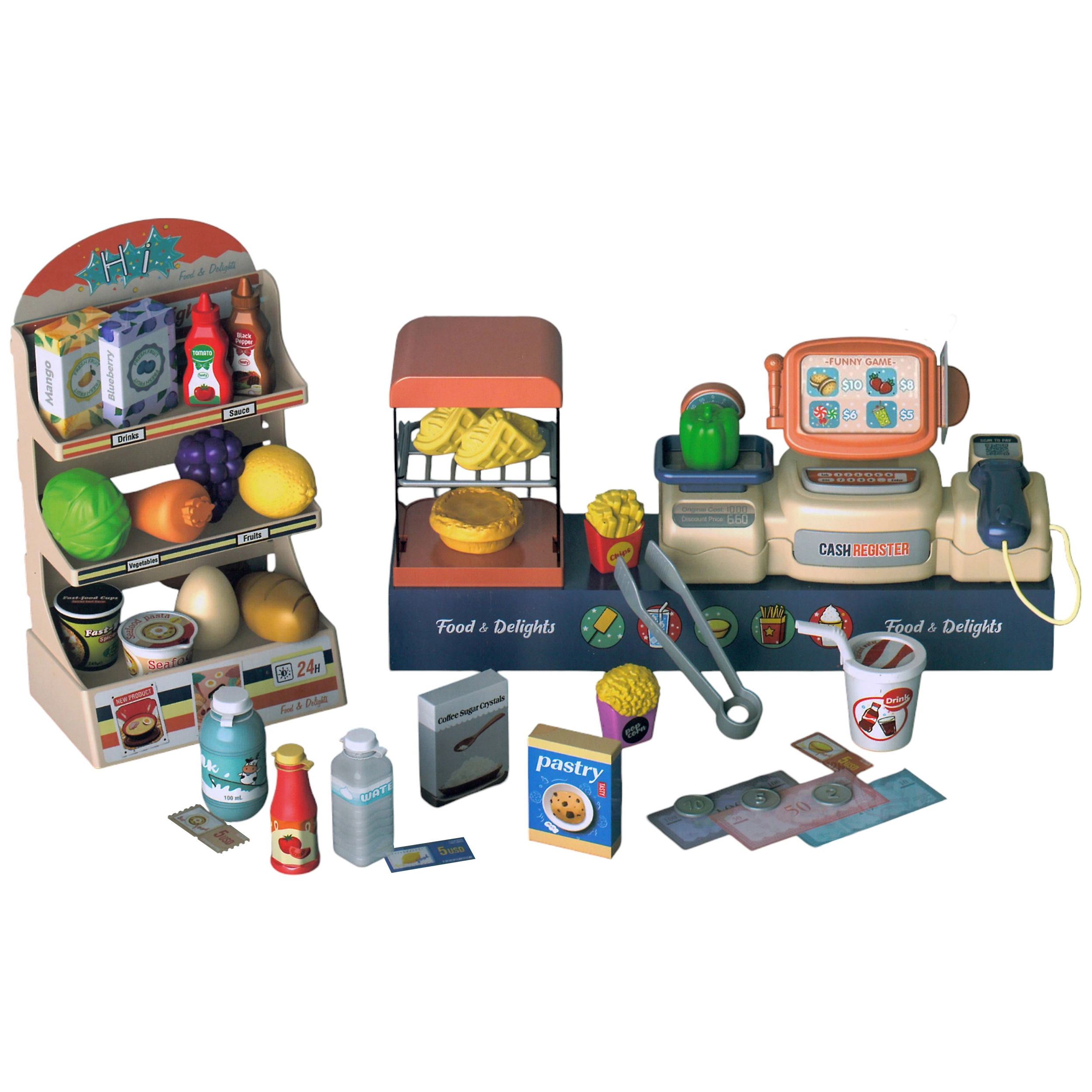 Jeu de magasin pour enfants : caisses, aliments et paniers