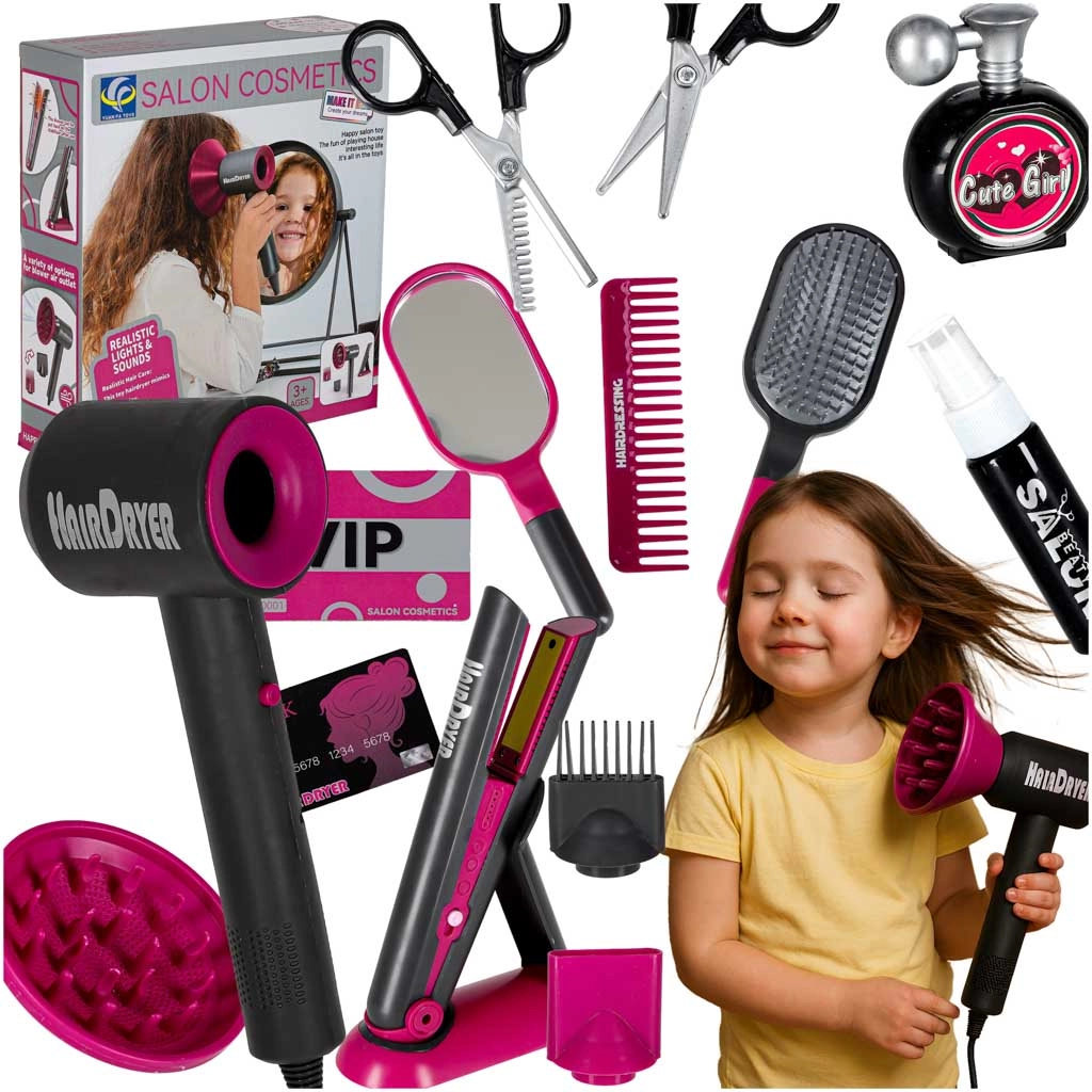 Les sets incluent aussi un fer à boucler, un lisseur, des bigoudis, des barrettes et des élastiques – tout pour styliser les cheveux et réaliser des coiffures tendances. Le matériel de coiffure pour enfants présente des détails réalistes tout en étant adapté aux petites mains pour une prise en main confortable. Jouer avec ces accessoires favorise le développement de la motricité fine, la coordination œil–main, l’imagination ainsi que les compétences sociales lors de l’accueil des clients au salon de beauté.