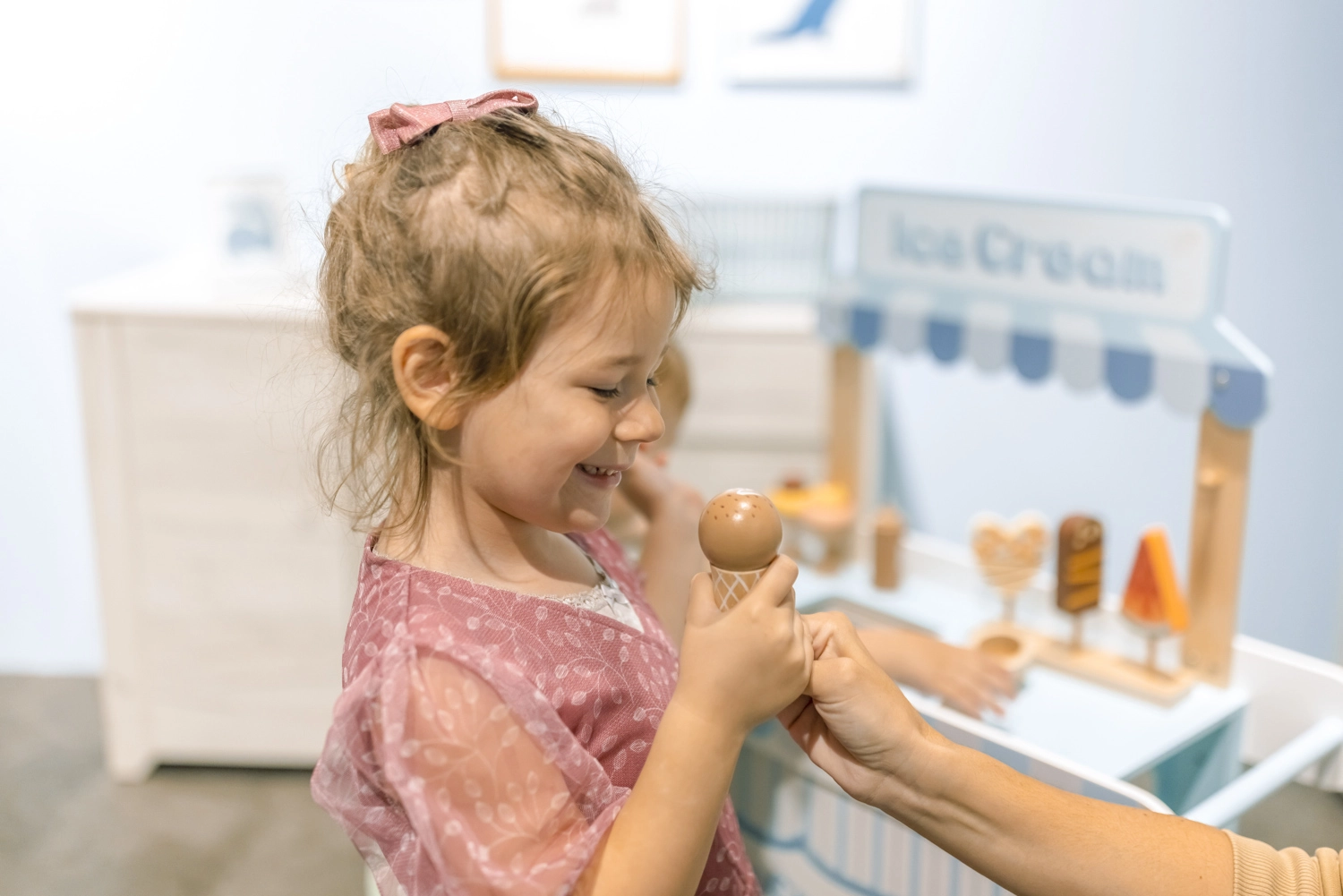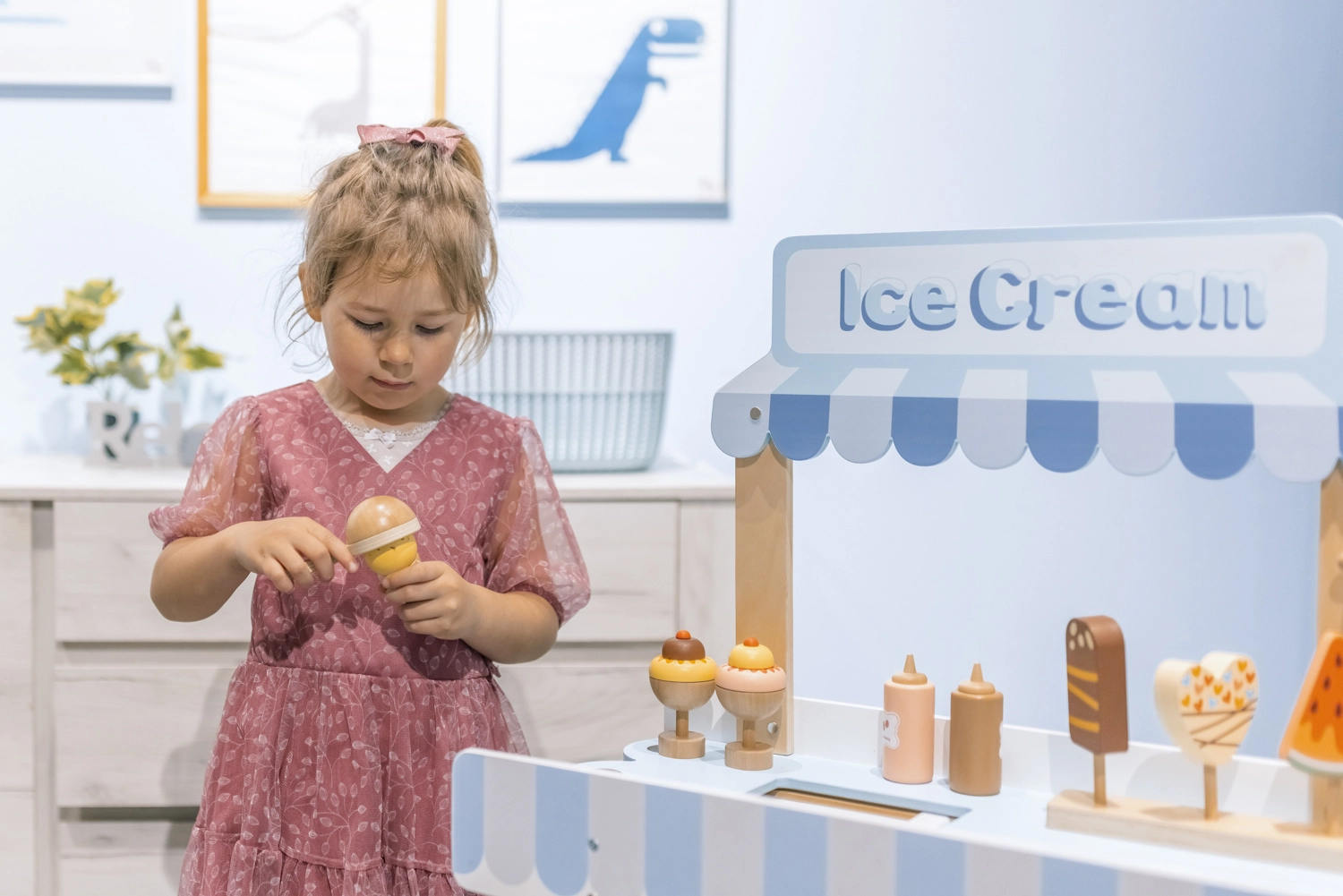 Jouer au magasin favorise l’apprentissage par le jeu : les enfants s’exercent au calcul, développent leur communication et leurs compétences sociales, entraînent leur motricité fine et leur pensée logique. Les sets pour 3+, 4+ et 5+ vont de simples comptoirs avec aliments à des stations de caisse complètes avec écran tactile, tiroir pour billets et pièces, balance, micro et affichage.