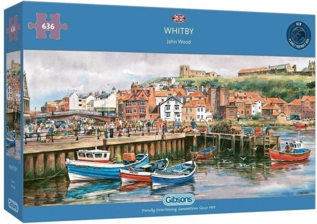 Découvrez les beautés de Whitby dans le Yorkshire avec ce puzzle panoramique de la marque Gibsons. Assembler ce puzzle de 636 pièces vous transportera dans le pittoresque port, où les ruines de l'abbaye Sainte-Hilda s'élèvent au-dessus des rues animées, sur la falaise East Cliff.