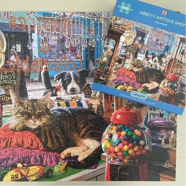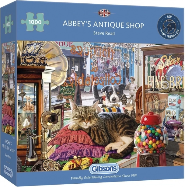 Puzzle GIBSONS Brocante de l’abbaye avec 1000 pièces. Dimensions une fois assemblé 68 × 49 cm. Un excellent cadeau et un défi relaxant pour les amateurs de puzzles.