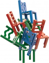 Le jeu propose 2 variantes : dans la première, vous essayez de vous débarrasser de vos chaises le plus vite possible en les ajoutant tour à tour à la pile ; dans la seconde, vous ramassez des chaises depuis l’amas sans faire tomber la structure. Grâce à des règles simples, le jeu est très accessible tout en restant suffisamment palpitant pour toute la famille.