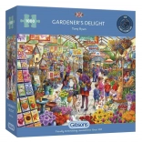 Profitez d’heures de détente avec un puzzle de qualité signé GIBSONS. L’illustration colorée « La joie du jardinier » propose 1000 pièces, une découpe précise et un assemblage agréable pour débutants comme pour avancés. Une fois terminé, le puzzle mesure env. 68 × 49 cm – idéal à encadrer.