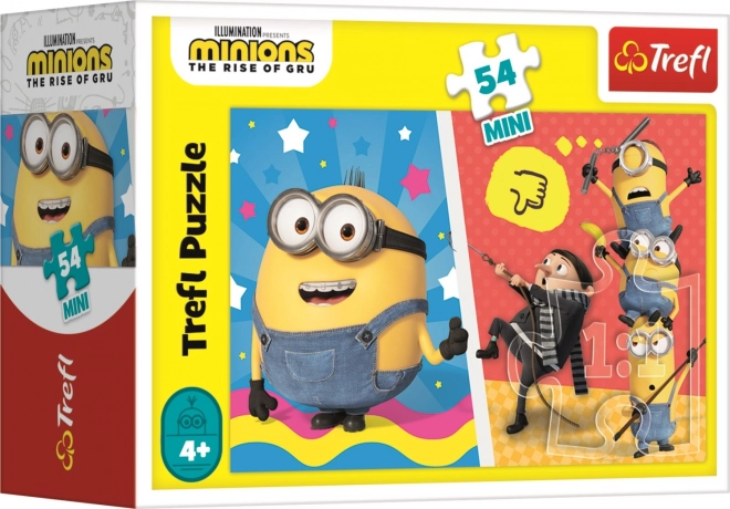 Mini puzzle Minions de la marque Trefl avec le motif « Bonne bande » proposant 54 pièces dans un emballage de voyage pratique. Des pièces d’environ 2,2 cm et un format compact du puzzle assemblé de 20 × 13 cm garantissent un assemblage rapide et amusant dans une petite boîte.