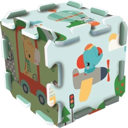 Les pièces peuvent être assemblées en différentes formes – construisez un cube, un tunnel pour petites voitures ou utilisez-les comme décoration murale. Le puzzle sert aussi de tapis pour la pâte à modeler et la peinture ; après usage, il suffit d’essuyer avec un chiffon humide. Un excellent choix dès 2 ans, qui favorise la motricité, l’imagination et le jeu autonome.