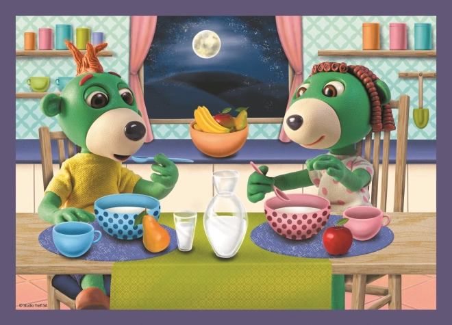 Découvrez l’univers des Treflíci avec cet ensemble de puzzles. Idéal pour une activité calme du soir, le puzzle Bonne nuit Treflíci apporte à la fois joie et apprentissage. L’ensemble comprend :