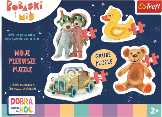 Le ravissant set de puzzles pour bébé « Bonne nuit » met en scène les personnages TREFLÍCI et leurs jouets sous forme de quatre images séparées. Chaque puzzle a un nombre de pièces différent (3, 4, 5 et 6), permettant à l’enfant de progresser pas à pas et de gagner en confiance lors de l’assemblage.