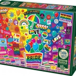 Le puzzle Cobble Hill Pride offre une expérience unique aux amateurs de puzzles. La matrice spéciale ne suit pas la grille standard, de sorte que les angles et les bords des pièces ne sont pas toujours alignés. Cela rend l’assemblage plus stimulant, tout en restant très amusant et créatif.