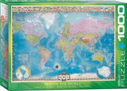 Découvrez le monde avec ce puzzle unique qui représente la carte du monde incluant des drapeaux et des données géographiques et politiques intéressantes. Ce modèle est pour ceux qui recherchent une difficulté accrue, car l'emporte-pièce des pièces ne suit pas la grille habituelle et chaque pièce a des formes insolites.