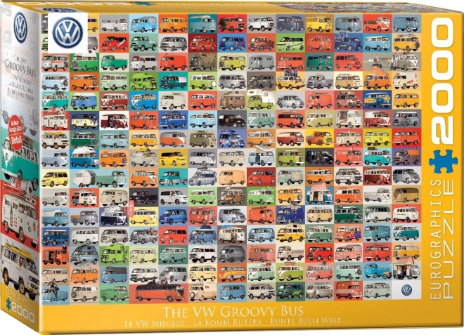 Ce puzzle premium EUROGRAPHICS au motif VW Groovy Bus apporte une atmosphère rétro rafraîchissante et un collage coloré des voitures légendaires de la marque Volkswagen. Grâce à sa conception soignée et à son design original, vous profiterez d’un assemblage plaisant et d’un résultat spectaculaire d’environ 99,7 × 67,6 cm.