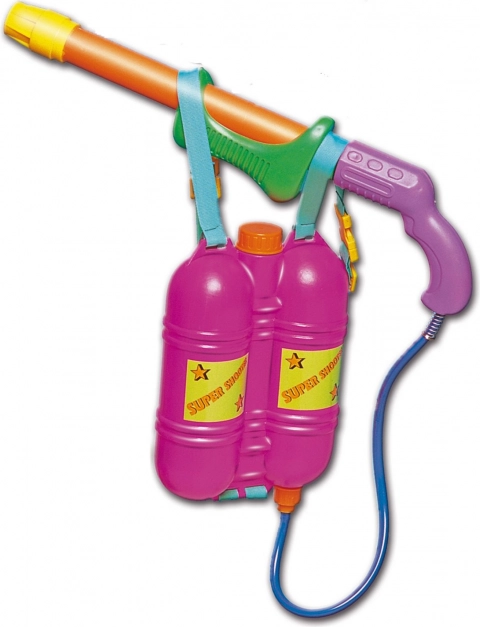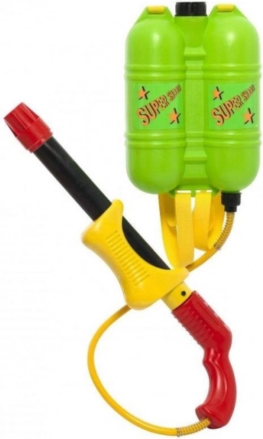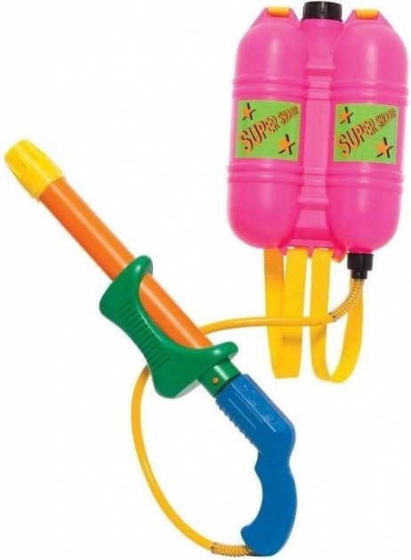 Pistolet à eau DOHÁNY avec un pratique double réservoir dorsal est le choix idéal pour chaque bataille d'eau. Il suffit de le remplir d'eau, de pomper et l'amusement peut commencer ! Grâce à son design ergonomique, la manipulation du pistolet est très confortable, tandis que les sangles permettent de le porter facilement sur le dos :