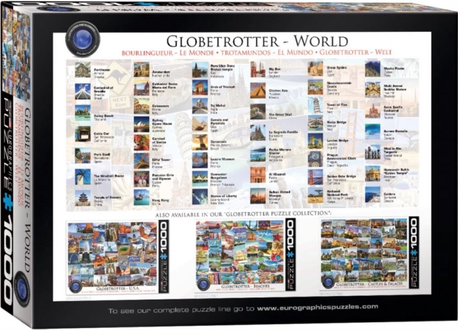 Plongez dans un fascinant tour du monde avec le puzzle EUROGRAPHICS Globe‑trotter. Chaque pièce s’insère dans une illustration soigneusement conçue, pleine de monuments célèbres et de destinations mythiques. Au dos de la boîte, vous trouverez en anglais des descriptions détaillées de plus de 40 sites majeurs, faisant du montage une activité à la fois divertissante et instructive.