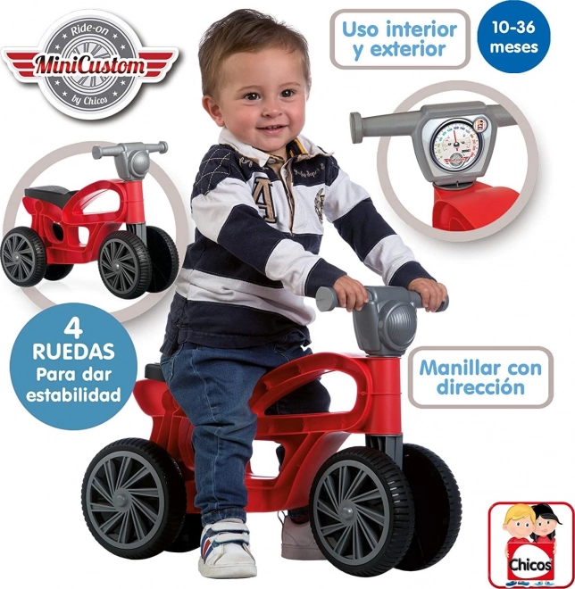 La draisienne rouge Mini Custom accompagne le développement naturel de la motricité et de l’équilibre tout en offrant beaucoup de plaisir à la maison comme au jardin. Grâce à ses dimensions compactes 54 × 22,5 × 38 cm et à une hauteur de selle de 27 cm, les enfants poussent facilement et montent en toute sécurité.
