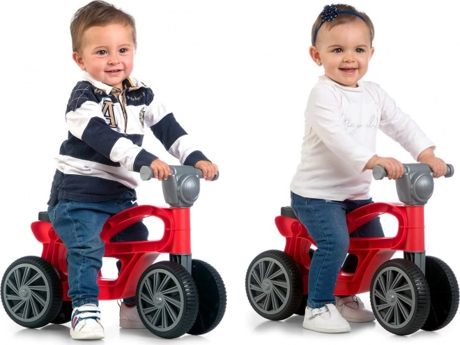 La construction en plastique robuste supporte les jeux quotidiens, et les quatre roues assurent de la confiance même sur des surfaces moins planes. La draisienne est conçue pour être stable, légère et facile à manœuvrer pour les plus petits.