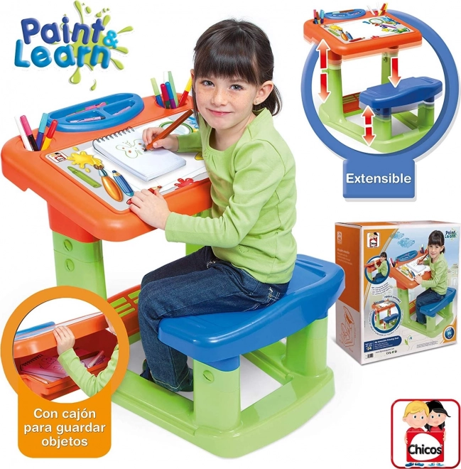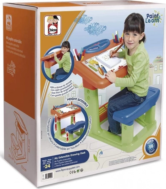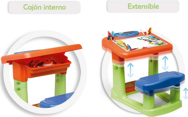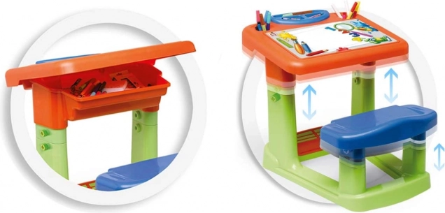 Le bureau scolaire pour enfant CHICOS est une excellente solution pour la chambre d’enfant comme pour la salle de jeux. Grâce au réglage de la hauteur de la table et du siège, l’enfant trouve toujours une position ergonomique pour dessiner, écrire et créer. Le compartiment pratique intégré au plateau garde crayons, pinceaux et feuilles à portée de main, pour un espace toujours ordonné.