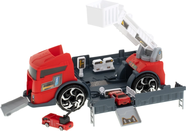 Transportez les petites voitures jusqu’au lieu d’intervention grâce à ce camion de pompiers. Le transporteur intégré permet de transporter deux modèles de petites voitures incluses, qui peuvent être facilement chargées à l’aide de rampes. Les enfants peuvent également s’amuser à déplacer la barre d’échelle coulissante, ce qui ajoute un niveau supplémentaire d’interactivité.