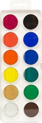 La palette rectangulaire en plastique est légère, résistante et pratique à transporter à l’école ou à l’atelier. Le set de 12 couleurs couvre une palette de base pour peindre sur papier, carton ou blocs pour aquarelle.