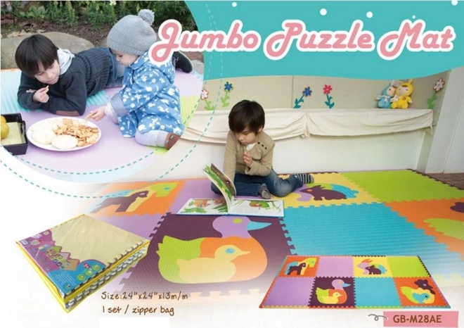 Ce puzzle en mousse se compose de huit grandes pièces carrées et de douze pièces de bordure, formant ensemble une surface d’environ 244 x 124 cm. Chaque pièce mesure 60 x 60 cm, sans bord, du tenon jusqu’à la découpe. Le tapis sûr, moelleux et lavable atténue le bruit et isole du froid, ce qui en fait un tapis de jeu idéal pour les chambres d’enfants.