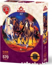 Le montage est simple : après avoir collé le puzzle sur le support fourni, assemblez le cadre, insérez le motif, fixez avec les clips et installez le mécanisme d’horloge. Le résultat est une horloge décorative d’un diamètre d’environ 46 cm, qui ravira les amateurs de chevaux comme les passionnés de puzzles.