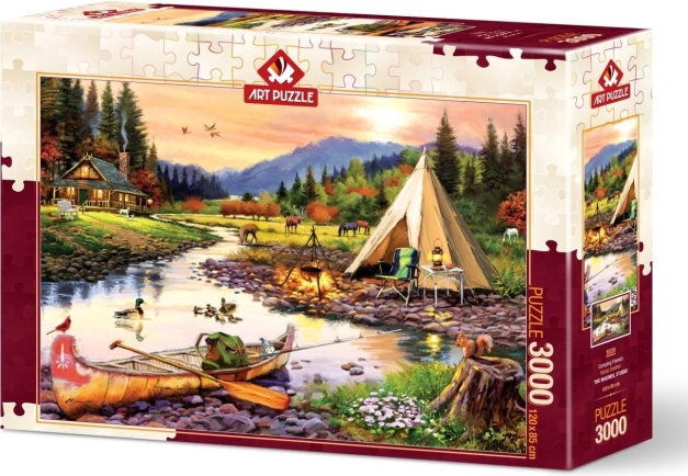 Profitez d’un moment de détente en assemblant ce grand puzzle au motif de camping de la marque ART PUZZLE. Il contient 3000 pièces et, une fois terminé, mesure environ 120 × 85 cm. Le fabricant propose en outre un service d’envoi de pièce manquante sous réserve de remplir les conditions requises.