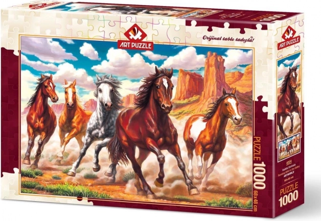 Profitez de la détente et du plaisir avec un puzzle représentant des chevaux sauvages dans une vallée pittoresque. Ce puzzle de 1000 pièces offre une fabrication de qualité, des découpes précises et une image finale d’environ 68 × 48 cm. Le fabricant ART PUZZLE propose en plus un service de renvoi de pièce manquante.