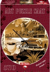Profitez d'un divertissement créatif avec cet ensemble de puzzle unique qui offre non seulement une expérience esthétique, mais aussi une utilisation pratique. Le puzzle de 570 pièces forme une belle image circulaire qui devient une horloge fonctionnelle une fois assemblée.