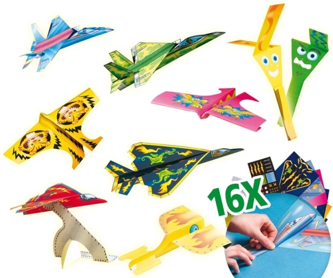 Fabrique ton propre avion en papier et amuse-toi comme jamais ! Ce kit créatif contient tout le nécessaire pour assembler jusqu’à 16 modèles. Choisis un motif parmi les gabarits, plie l’avion et décore-le avec les autocollants. Idéal pour développer la motricité fine et la créativité. Jusqu’à 16 avions dans un seul coffret, pliage facile et décoration amusante pour les enfants dès 6 ans.