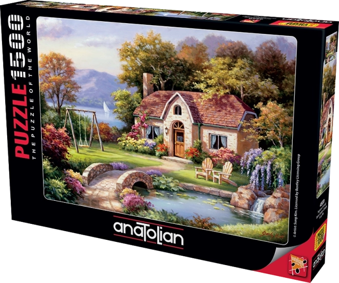 Puzzle ANATOLIAN avec motif de pont en pierre près du chalet, 1500 pièces. Support pratique, possibilité d’envoi de pièce manquante. Dimensions env. 85 × 60 cm.