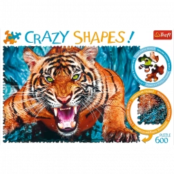 De9couvrez Puzzle Crazy Shapes, une série révolutionnaire qui apporte des pièces aux formes non conventionnelles, sans bords droits et avec un contour irrégulier. Une fois assemblé, une image de 680 x 480 mm apparaetra, représentant un tigre impressionnant.