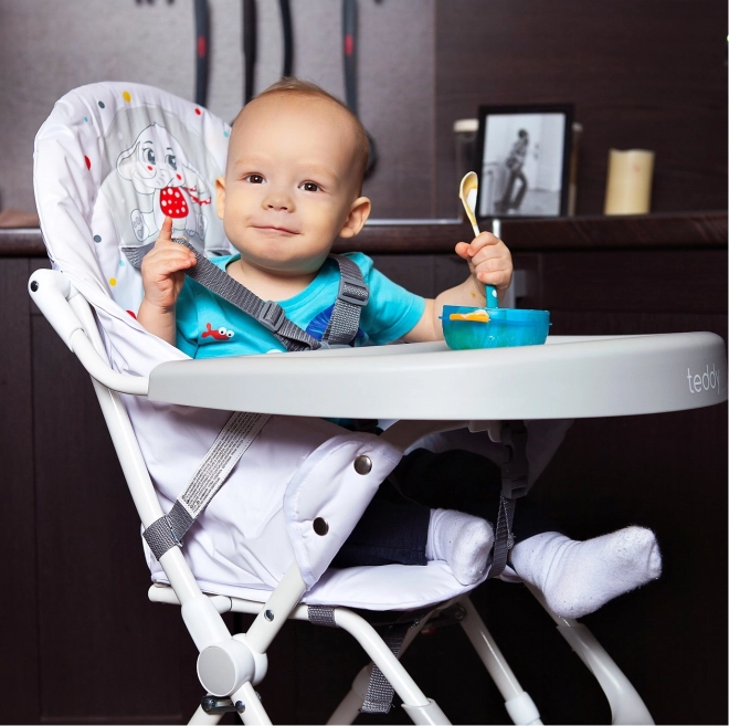 La chaise haute pliante CHIPOLINO Teddy est un choix léger et sûr pour les repas quotidiens et les premières purées. Elle offre un siège large et confortable, un harnais de sécurité 5 points, un grand plateau et un nettoyage facile. Grâce à son pliage compact, elle se range rapidement même dans les petits espaces.