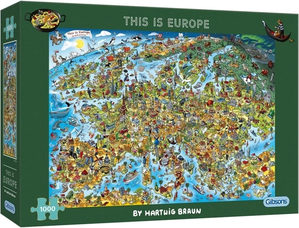 Profitez d’heures de divertissement avec le puzzle de qualité Voici l’Europe du fabricant britannique renommé GIBSONS. Grâce à une découpe précise et des pièces robustes, tout s’emboîte en douceur, rendant l’assemblage agréable aussi bien pour les débutants que pour les puzzleurs expérimentés.