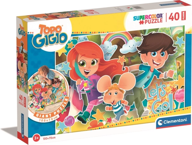 Découvrez le plaisir d’assembler les puzzles de sol géants de CLEMENTONI au design Souriceau Gigio. Ce puzzle spécial fait partie de la collection SuperColor, conçue pour les enfants, et les accompagne dans le développement de leurs compétences manuelles et d’observation.