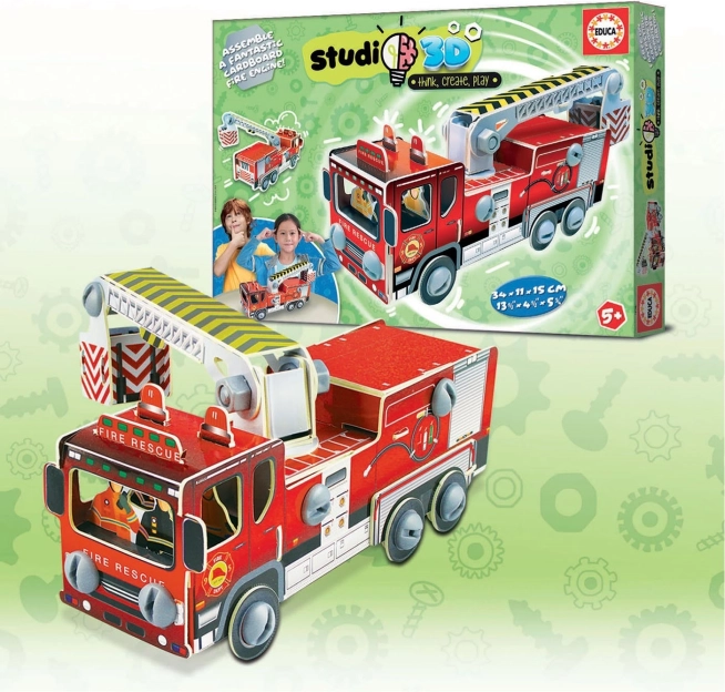 Construisez votre propre modèle 3D de véhicule de pompiers en carton rigide, sans ciseaux ni colle. Les pièces se détachent facilement du carton et se relient avec des vis et écrous en plastique. Inclus : un guide illustré étape par étape. Le modèle est réutilisable et développe la pensée technique et logique, la concentration et le sens du détail.
