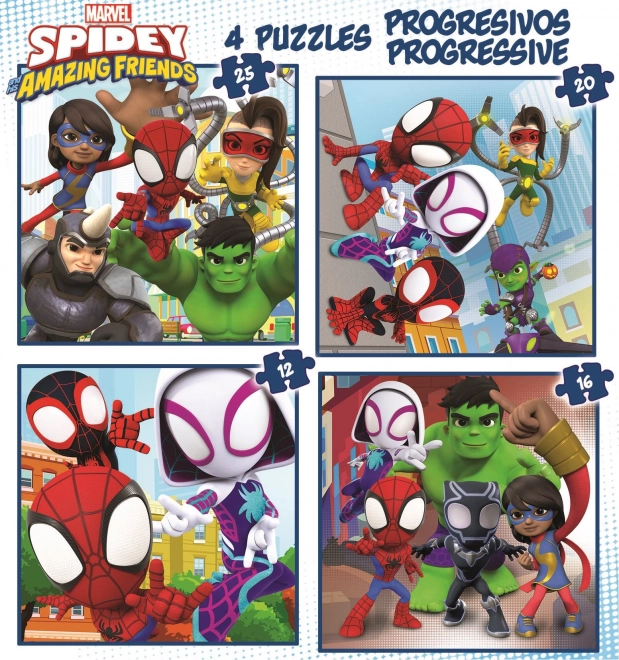 Les puzzles progressifs SPIDEY et ses formidables amis 4-en-1 apportent aux enfants la joie de l’assemblage tout en les aidant discrètement à apprendre la concentration et la patience. Quatre puzzles différents de 12, 16, 20 et 25 pièces permettent une transition en douceur vers des images plus exigeantes et soutiennent le développement de la pensée logique.