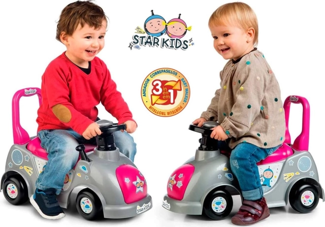 Draisienne 3-en-1 Star Kids rose : chariot de marche, draisienne et petit véhicule en un. Plastique résistant, butées anti-basculement, espace de rangement. Pour enfants de 10 à 36 mois.