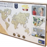 Montage simple - il suffit de l'assembler et de le fixer au mur à l'aide de ruban adhésif double face. Les dimensions de la carte sont de 830 mm x 550 mm. Un cadeau parfait qui ravira chaque destinataire, sans emballage en plastique de la marque WOODEN CITY.