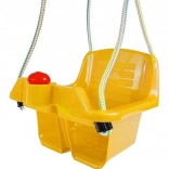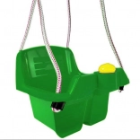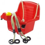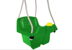 Le siège profond avec dossier haut et barre avant en T maintient l’enfant en position sûre pendant toute la durée de la balançoire.