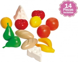 Le set comprend une sélection de 14 accessoires, dont des fruits tels que poires, pommes et bananes, qui aident les enfants à découvrir les couleurs, les formes et les bases d’une alimentation saine. Le jeu de la marchande renforce aussi la motricité fine et la résolution de problèmes lors des achats et du tri.