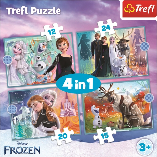 Le puzzle 4v1 contient différents nombres de pièces (12, 15, 20, 24), ce qui offre une combinaison idéale pour les enfants de différents âges. Une fois assemblés, ils forment de belles images du monde de La Reine des Neiges.