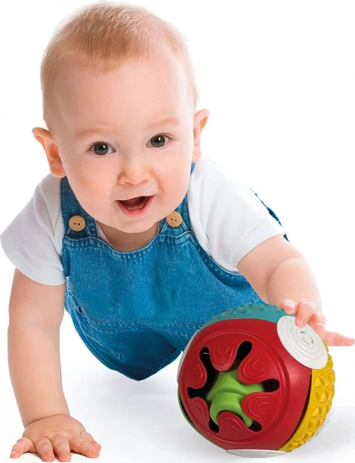 Le jouet est fabriqué à partir de matériaux sûrs et faciles à entretenir, la boule pouvant être lavée avec du savon doux et de l'eau tiède. Il est idéal pour les enfants dès l'âge de 6 mois et soutient leur développement précoce.