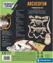 Explorez le monde de la préhistoire avec Archeo Fun : Tyrannosaurus rex de CLEMENTONI. Dans le bloc de « roche », vous trouverez des pièces du squelette de T‑Rex en matériau fluorescent qui, une fois chargées à la lumière, brillent dans l’obscurité. Le kit est conçu pour être à la fois ludique et éducatif : les enfants découvrent comment se forment les fossiles et comment vivaient les dinosaures préhistoriques.