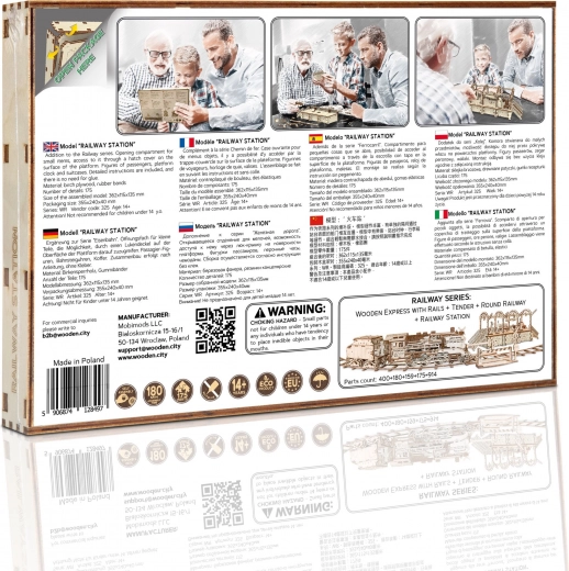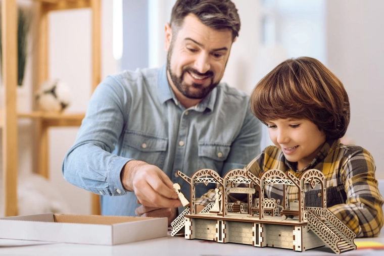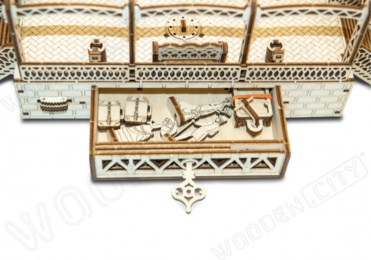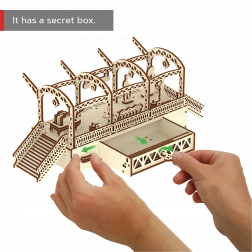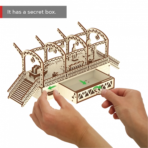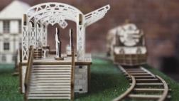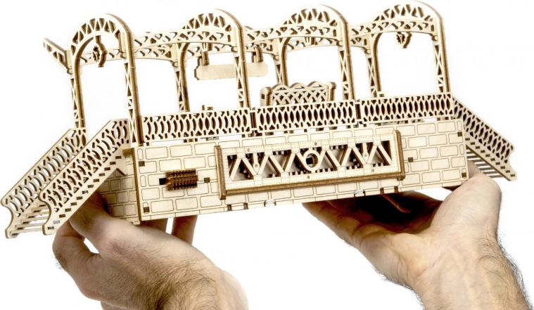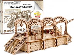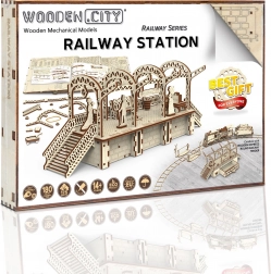 Le puzzle 3D en bois WOODEN CITY gare ferroviaire apporte l’atmosphère authentique d’une gare avec des arches décoratives, des bancs et des figurines de voyageurs. L’assemblage se fait sans colle ni outils, les pièces s’ajustent parfaitement et le modèle final est non seulement décoratif, mais aussi fonctionnel – vous pouvez ranger de petits objets dans le compartiment secret.