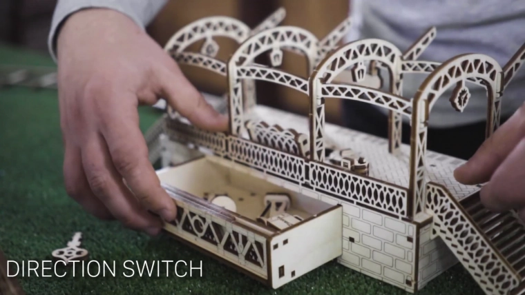 - Puzzle 3D en bois – modèle mécanique de gare ferroviaire
